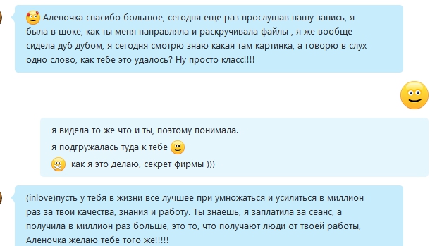 Так что я адекватна, цель отзыва – не похвала и не благодарность. Это отчет о Вашем состоянии, после сеанса, за которое я несу ответственность.