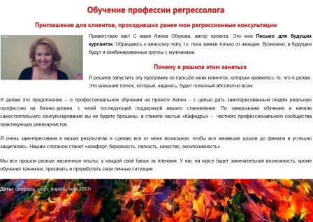 Copyright text 2015-2025. All rights reserved. ВСЕ ПРАВА ЗАЩИЩЕНЫ. Сайт психолога, регрессолога Алены Обуховой. Для взрослой аудитории от 25 лет. Сайт заполнен исключительно авторским контентом. Распространение статей на форумы – разрешается, при условии НЕ коммерческого использования – и со ссылкой на источник «HCR» с указанием автора Алены Обуховой. Связь по email: helenreincarnation@gmail.com …… Внимание КОЛЛЕГАМ. Идея, оформление и все письменные материалы на всех страницах данного сайта и других сайтов Проекта «HCR» - являются авторскими, и их ЗАПРЕЩЕНО переносить в любом виде (заимствовать, копировать, выдавать за свои) на сайты других регрессологов.