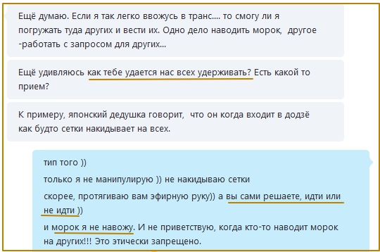 Вопрос: «Читала, вы где то писали в новостях, что в 2017г будете применять еще и гипноз для погружений. Это будет как крайняя мера, если глубокий транс не будет давать погружения? Или можно сразу, идя на сеанс, просить попробовать гипноз?»