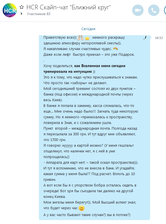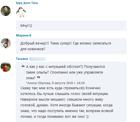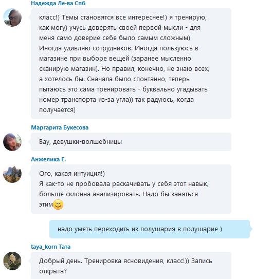 Чат. Тема тренировки интуиции и яснознания