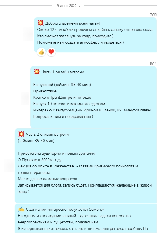 обо всех своих личных наработках и проходах в разные темы, как это развивалось и открывалось..