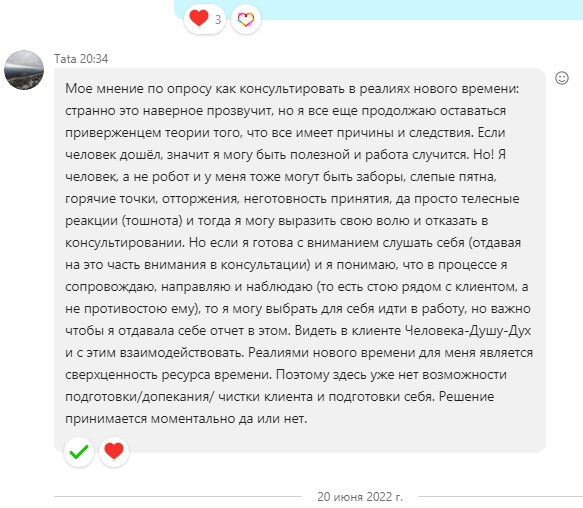 Я пообщалась с сотнями людей в личках, и скажу вам честно - это лучшие из разговоров, потому что именно в личках - раскрывались люди, своей истинной ценностью, - которой не раскрываются ни здесь, ни в минигруппах, ни вовне..
