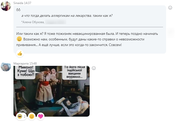 Мне категорически запрещено вакцинироваться)) Я вхожу с списки "исключений" (спасибо тебе Душа за такой инопланетный организм, конечно)