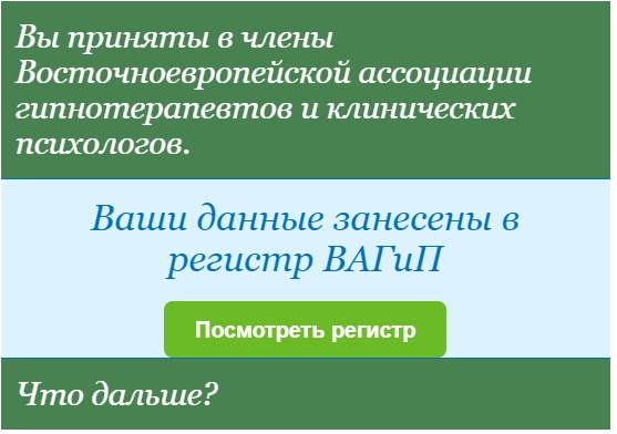 декабрь 2016г. - Статус эксперта в гипнотерапии - подтвержден (сертификация)