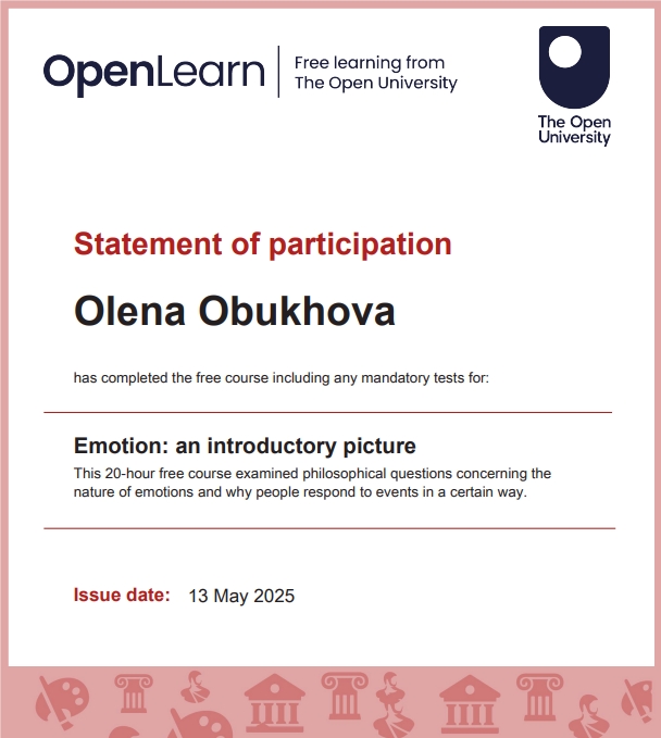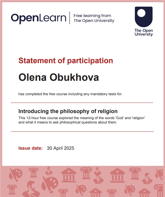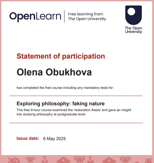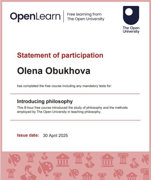 Я Алена Обухова, в 2025г. прошла большую подготовку по ФИЛОСОФИИ. Это документальное дополнение к моим статусам -