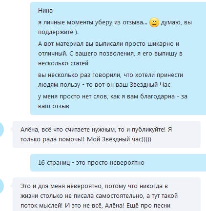 Мне очень радостно от этого, т.к. сильно переживала перед сеансом, что не смогу понять информацию и подведу Алёну, зря потратив её время.
