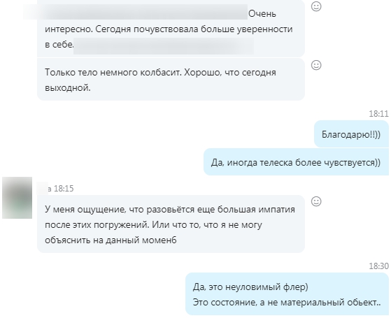 1 Провела сеанс с феноменальными открытиями. Но к сожалению, мои восторги по сеансу имеют лишь мой интерес: это было необычное исследование, давшее ценный результат и итог.
