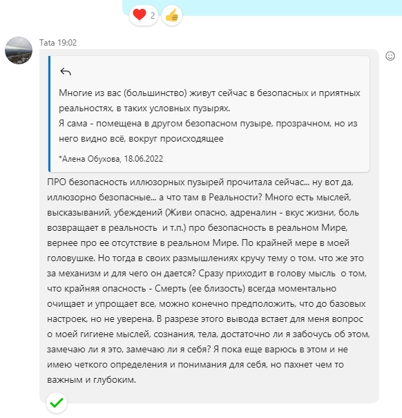 Я пообщалась с сотнями людей в личках, и скажу вам честно - это лучшие из разговоров, потому что именно в личках - раскрывались люди, своей истинной ценностью, - которой не раскрываются ни здесь, ни в минигруппах, ни вовне..