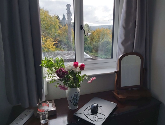 Цветы от дочки, привезла с собой (это пол-букета), остальное поставила в кухне