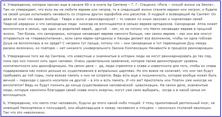 Но когда у самого мастера такая каша в голове, совершенно нет понятия темы Души, и что такое вообще Душа. Мне жаль, что и по мне "проехался", даже не попытавшись подискутировать, и своих учеников учит заведомо неправильным понятиям. Весь мой проект со всеми материалами, собранными эмпирическим путем, доказывает ошибочность большинства пунктов той "альтернативной теории".