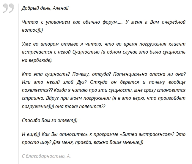 Исключение: особый запрос клиента на проработку, когда контракты с обитателями нижнего мира связаны и влияют на нынешнее воплощение. И то – беру такие сеансы неохотно и в исключительных случаях, если действительно необходимо, и клиент выбрал мне доверить.