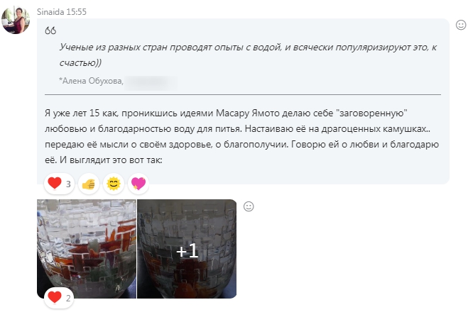 На нашем историческом сайте ранее я разместила интересную информацию об экспериментах и исследованиях с водой: