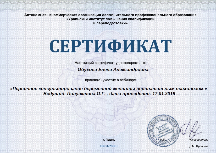 • (моя учеба) Продолжение углубления Перинатальной психологии