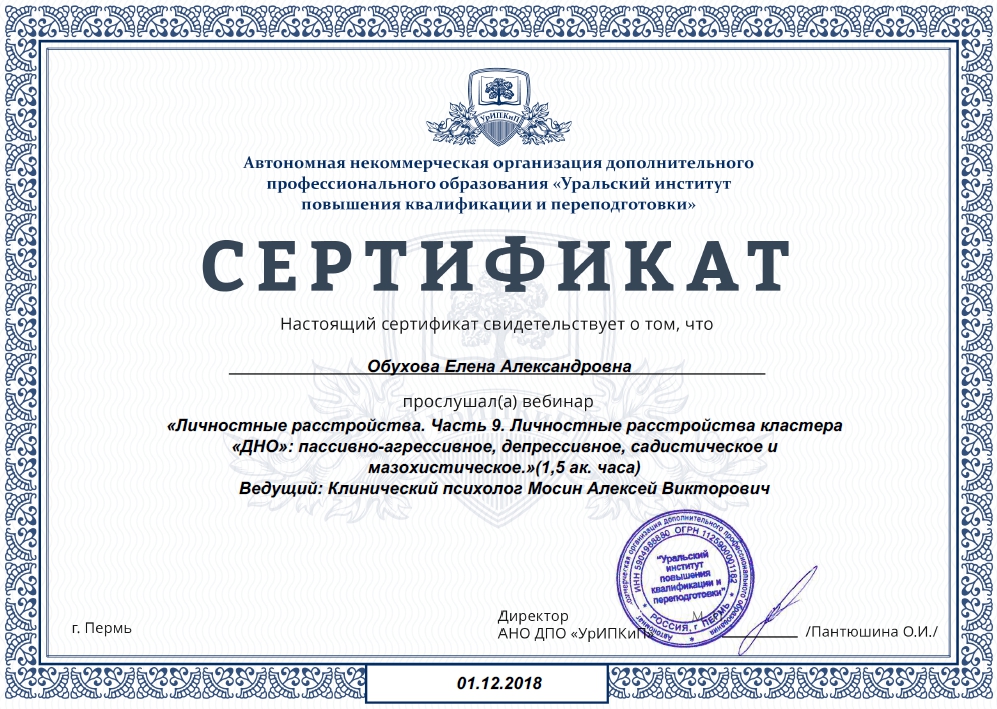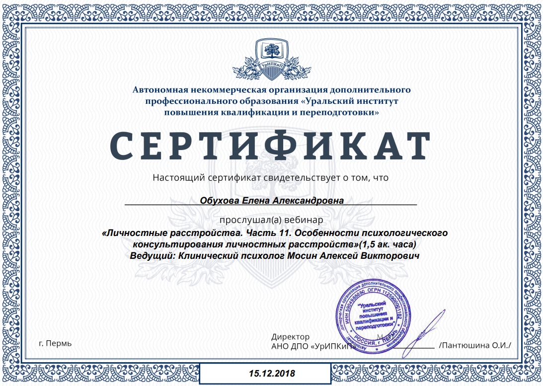 (моя учеба) три! сертификата: по разным личностным расстройствам: клиника и терапия