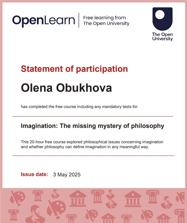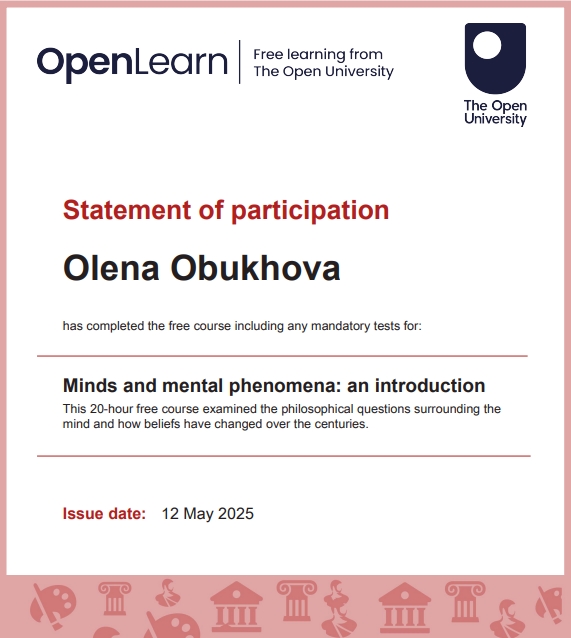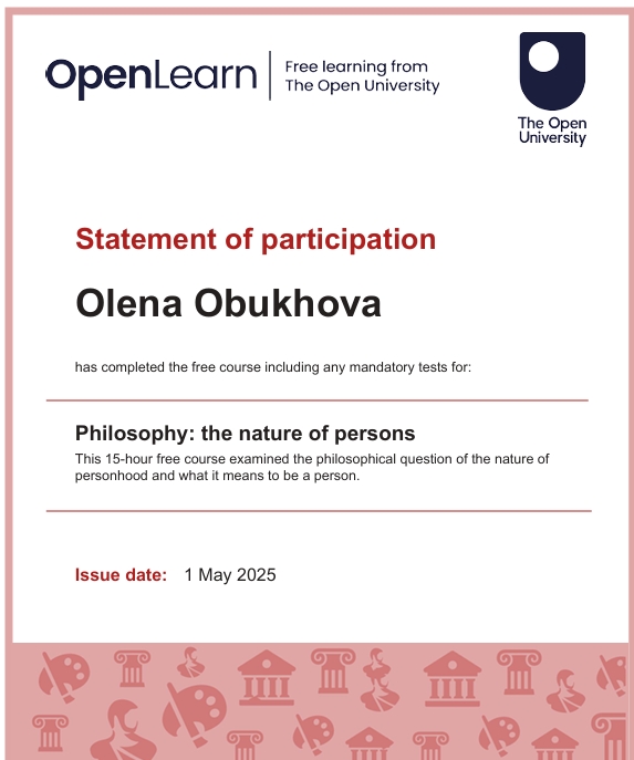 Я Алена Обухова, в 2025г. прошла большую подготовку по ФИЛОСОФИИ. Это документальное дополнение к моим статусам -